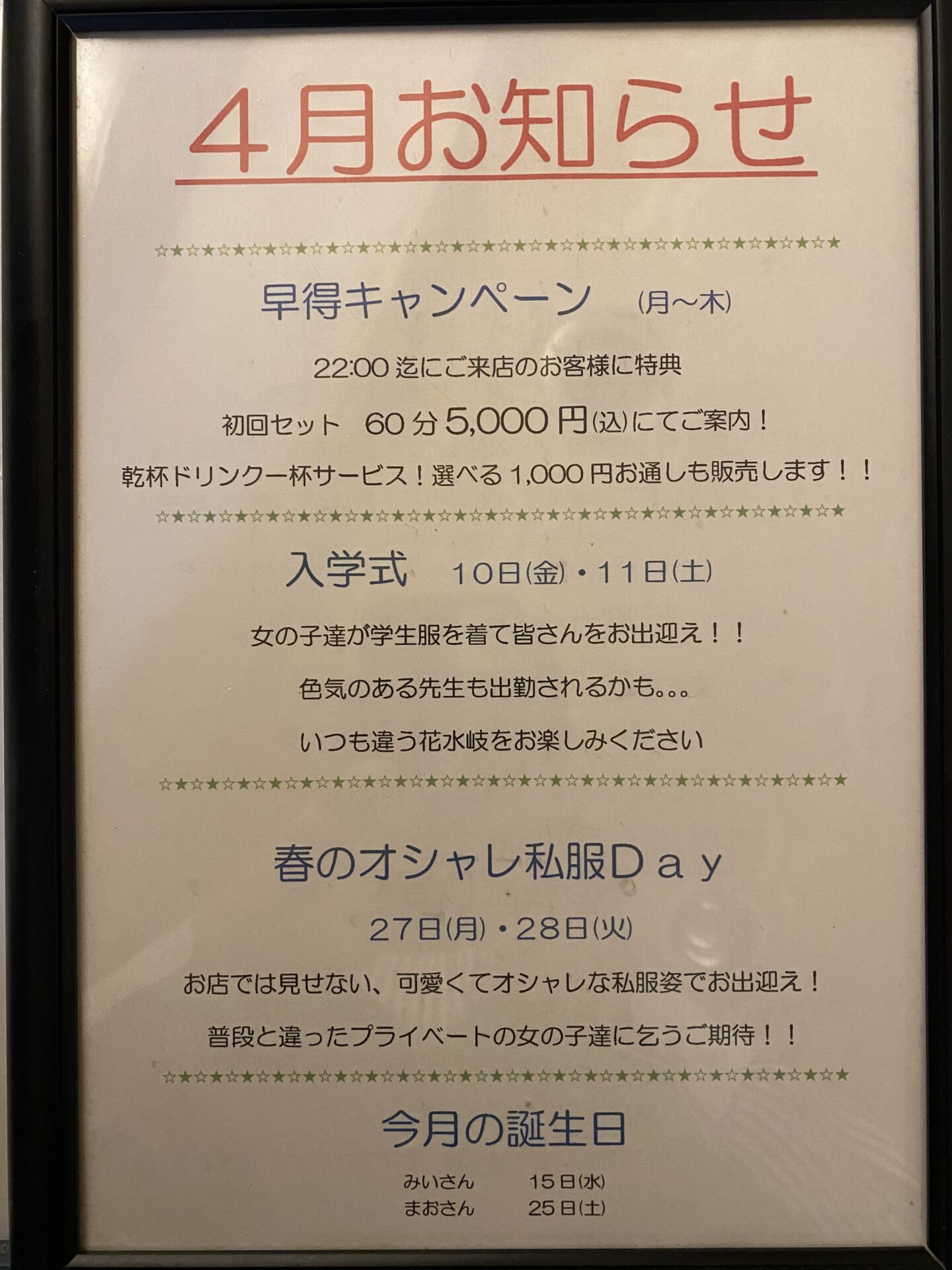 4月も盛り上がる元気になれるイベントを企画して皆さんのご来店をスタッフ一同お待ちしております
